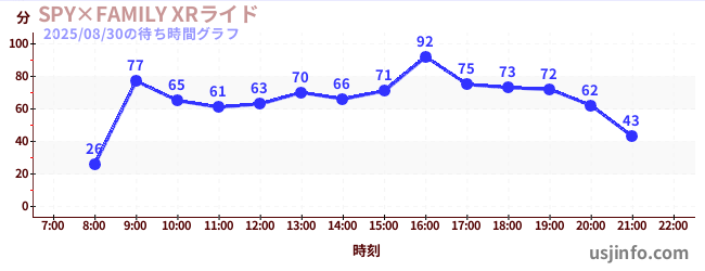 • SPY×FAMILY XRライド$B$N(B2025年08月30日の待ち時間