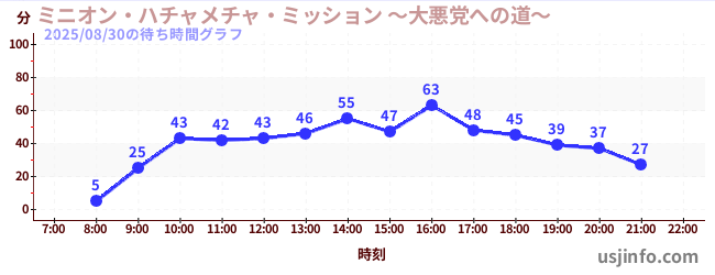 • ミニオン・ハチャメチャ・ミッション ~大悪党への道~$B$N(B2025年08月30日の待ち時間