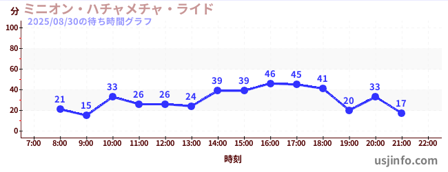• ミニオン・ハチャメチャ・ライド$B$N(B2025年08月30日の待ち時間