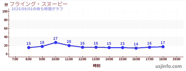 • フライング・スヌーピー$B$N(B2025年09月01日の待ち時間
