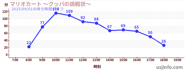 • マリオカート ~クッパの挑戦状~$B$N(B2025年09月01日の待ち時間