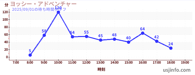 • ヨッシー・アドベンチャー$B$N(B2025年09月01日の待ち時間
