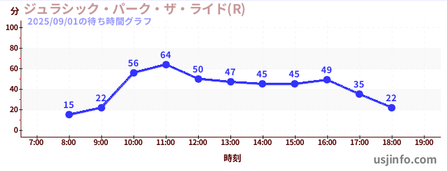 • ジュラシック・パーク・ザ・ライド(R)$B$N(B2025年09月01日の待ち時間