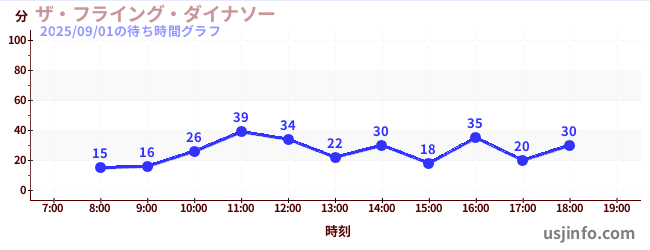• ザ・フライング・ダイナソー$B$N(B2025年09月01日の待ち時間
