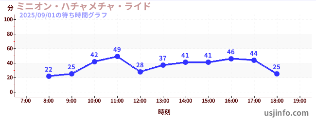 • ミニオン・ハチャメチャ・ライド$B$N(B2025年09月01日の待ち時間