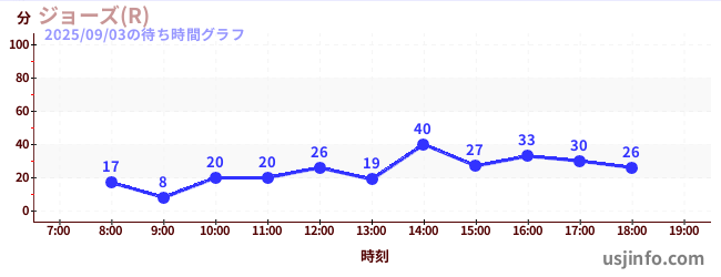 • ジョーズ(R)$B$N(B2025年09月03日の待ち時間