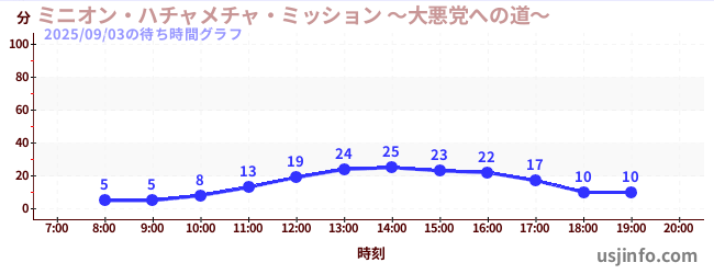 • ミニオン・ハチャメチャ・ミッション ~大悪党への道~$B$N(B2025年09月03日の待ち時間