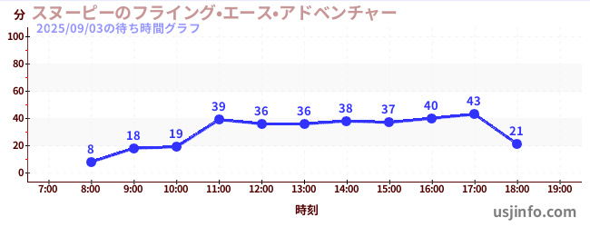 • スヌーピーのフライング•エース•アドベンチャー$B$N(B2025年09月03日の待ち時間