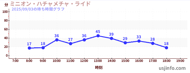 • ミニオン・ハチャメチャ・ライド$B$N(B2025年09月03日の待ち時間