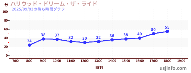 • ハリウッド・ドリーム・ザ・ライド$B$N(B2025年09月03日の待ち時間