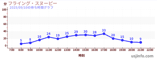 • フライング・スヌーピー$B$N(B2025年09月10日の待ち時間