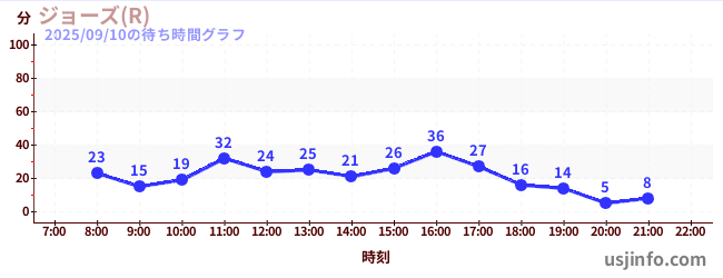 • ジョーズ(R)$B$N(B2025年09月10日の待ち時間