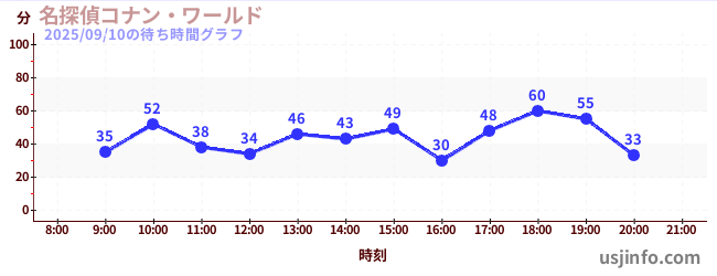 • 名探偵コナン・ワールド$B$N(B2025年09月10日の待ち時間