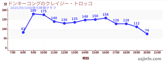 • ドンキーコングのクレイジー・トロッコ$B$N(B2025年09月10日の待ち時間