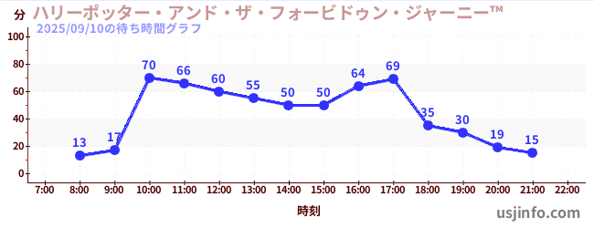 • ハリーポッター・アンド・ザ・フォービドゥン・ジャーニー™$B$N(B2025年09月10日の待ち時間