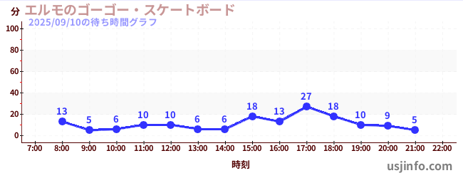 • エルモのゴーゴー・スケートボード$B$N(B2025年09月10日の待ち時間