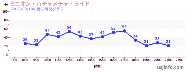• ミニオン・ハチャメチャ・ライド$B$N(B2025年09月10日の待ち時間