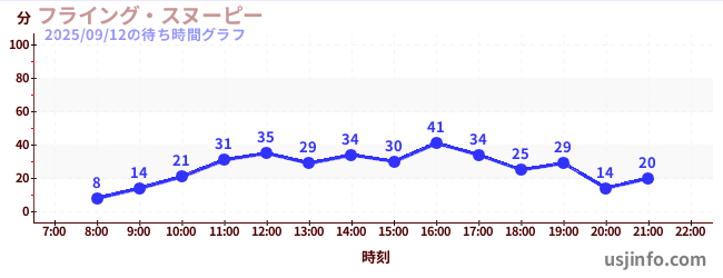 • フライング・スヌーピー$B$N(B2025年09月12日の待ち時間