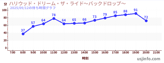 • ハリウッド・ドリーム・ザ・ライド〜バックドロップ〜$B$N(B2025年09月12日の待ち時間