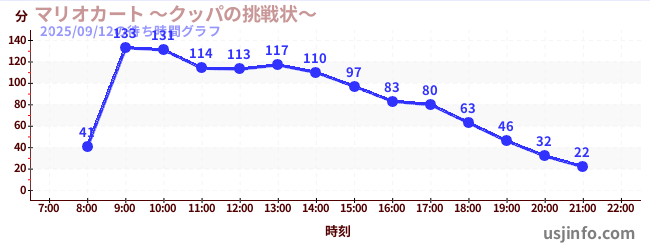 • マリオカート ~クッパの挑戦状~$B$N(B2025年09月12日の待ち時間