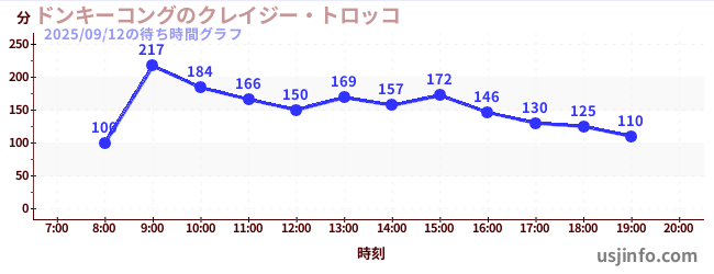 • ドンキーコングのクレイジー・トロッコ$B$N(B2025年09月12日の待ち時間