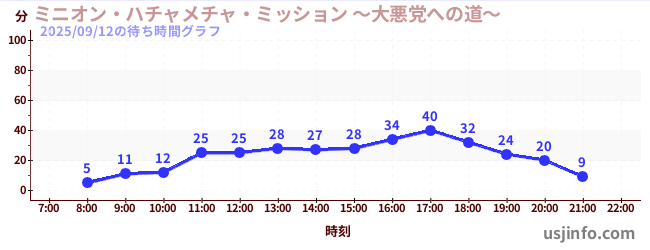 • ミニオン・ハチャメチャ・ミッション ~大悪党への道~$B$N(B2025年09月12日の待ち時間