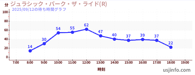 • ジュラシック・パーク・ザ・ライド(R)$B$N(B2025年09月12日の待ち時間
