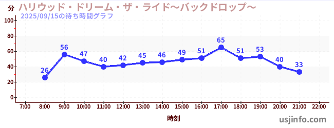 • ハリウッド・ドリーム・ザ・ライド〜バックドロップ〜$B$N(B2025年09月15日の待ち時間