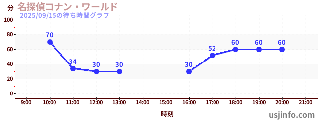 • 名探偵コナン・ワールド$B$N(B2025年09月15日の待ち時間