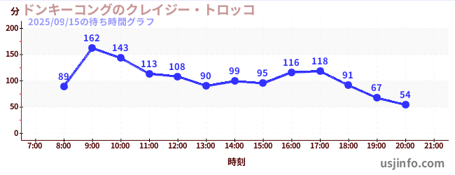 • ドンキーコングのクレイジー・トロッコ$B$N(B2025年09月15日の待ち時間