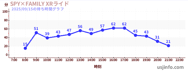 • SPY×FAMILY XRライド$B$N(B2025年09月15日の待ち時間