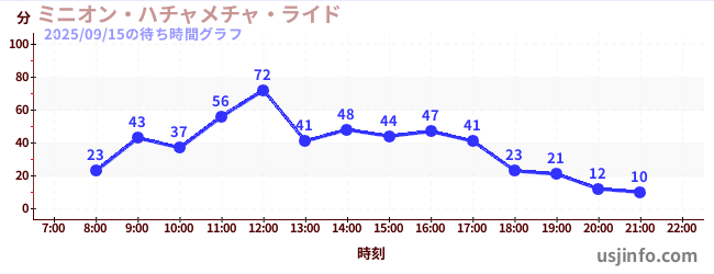 • ミニオン・ハチャメチャ・ライド$B$N(B2025年09月15日の待ち時間