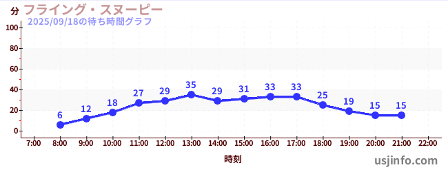• スヌーピーのフライング•エース•アドベンチャー$B$N(B2025年09月18日の待ち時間