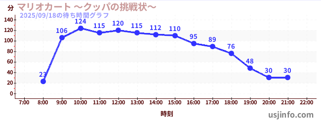 • マリオカート ~クッパの挑戦状~$B$N(B2025年09月18日の待ち時間