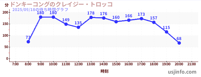 • ドンキーコングのクレイジー・トロッコ$B$N(B2025年09月18日の待ち時間