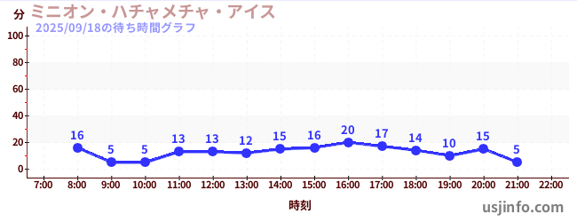 • ミニオン・ハチャメチャ・アイス$B$N(B2025年09月18日の待ち時間