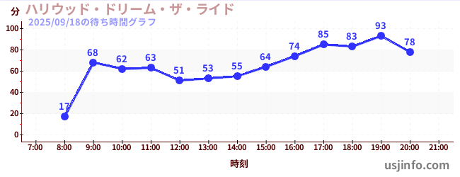 • ハリウッド・ドリーム・ザ・ライド$B$N(B2025年09月18日の待ち時間