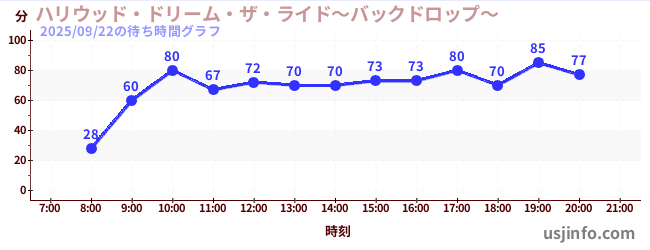 • ハリウッド・ドリーム・ザ・ライド〜バックドロップ〜$B$N(B2025年09月22日の待ち時間