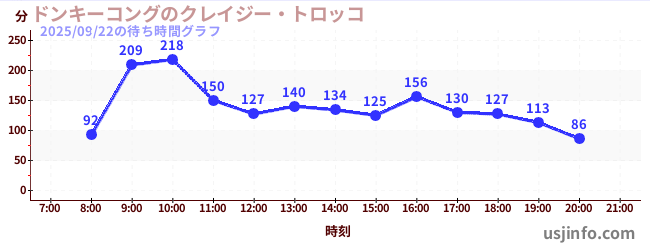 • ドンキーコングのクレイジー・トロッコ$B$N(B2025年09月22日の待ち時間