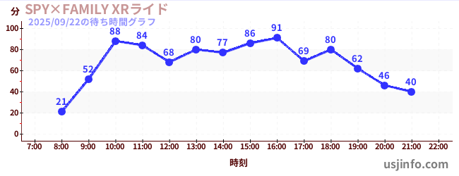 • SPY×FAMILY XRライド$B$N(B2025年09月22日の待ち時間