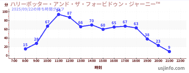 • ハリーポッター・アンド・ザ・フォービドゥン・ジャーニー™$B$N(B2025年09月22日の待ち時間