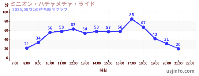 • ミニオン・ハチャメチャ・ライド$B$N(B2025年09月22日の待ち時間