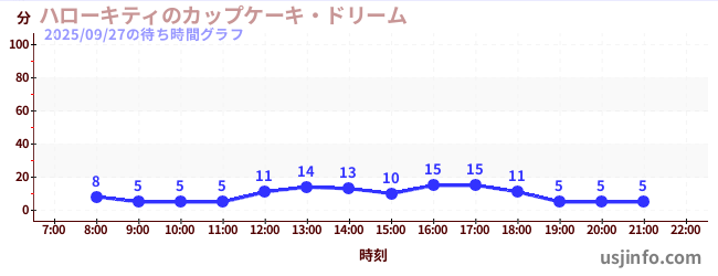 • ハローキティのカップケーキ・ドリーム$B$N(B2025年09月27日の待ち時間