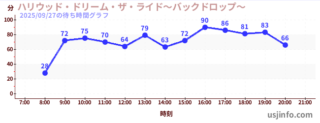 • ハリウッド・ドリーム・ザ・ライド〜バックドロップ〜$B$N(B2025年09月27日の待ち時間