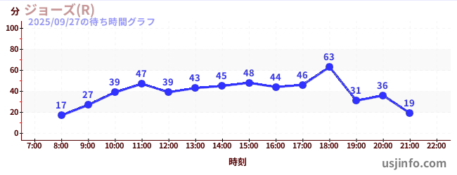 • ジョーズ(R)$B$N(B2025年09月27日の待ち時間