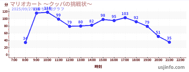 • マリオカート ~クッパの挑戦状~$B$N(B2025年09月27日の待ち時間