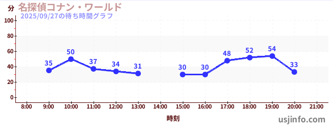 • 名探偵コナン・ワールド$B$N(B2025年09月27日の待ち時間