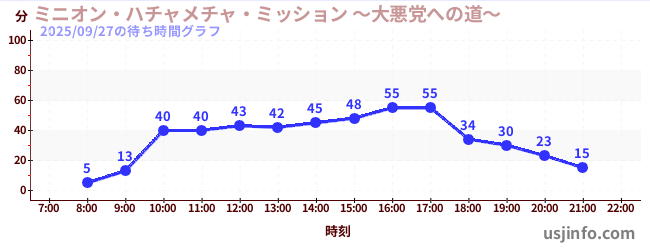 • ミニオン・ハチャメチャ・ミッション ~大悪党への道~$B$N(B2025年09月27日の待ち時間