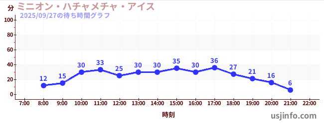 • ミニオン・ハチャメチャ・アイス$B$N(B2025年09月27日の待ち時間