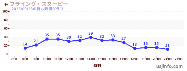 • フライング・スヌーピー$B$N(B2025年09月28日の待ち時間